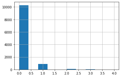 1 | df['goals'].hist(); |
